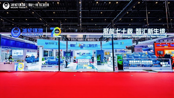 本次展会冰轮环境聚焦智慧能源综合解决方案、工业全域热控系统解决方案、船海能源动力系统解决方案等典型场景,全方位呈现面对复杂工况温控与零碳供能的综合技术实力。哈特福德系列高效螺杆压缩机、大功率高压高速磁悬浮蒸汽热泵离心压缩机、超低温环保工质复叠机组等核心装备高光亮相,彰显在工业全域热控领域的深厚技术储备和智能制造能力。同时,溴电一体复合式冷水机组与CO₂跨临界冷热高效一体机等创新产品,诠释天然工质应用与余热利用的耦合突破进展。依托冰轮智慧云服务,现场还通过数字孪生与双擎驱动能效平台,动态演示从智能仓储到全场景智碳解决方案的创新成果,让访客直观感受“数字大脑+人机协同”带来的能效跃升。